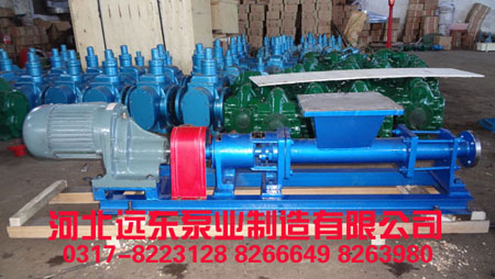 單螺桿泵是一種內(nèi)嚙合偏心回轉(zhuǎn)的容積泵,泵的主要構(gòu)件:一根單頭螺旋的轉(zhuǎn)子和一個通常用彈性材料制造的具有雙關(guān)螺旋的定子,當(dāng)轉(zhuǎn)子在定于型腔內(nèi)繞定子的軸線作行星回轉(zhuǎn)時,轉(zhuǎn)定子之間形成的密閉腕就沿轉(zhuǎn)子螺線產(chǎn)生位移;因此就將介質(zhì)連續(xù)地,均速地、而且容積恒定地從吸入口送到壓出端,基于這件特性,單螺桿泵特別適合于下列工況的工作。  輸送高粘度介質(zhì):根據(jù)單螺桿泵的大小不同可以輸送粘度從37000-200000厘泊的介質(zhì)。 含有顆;蚶w維的介質(zhì):顆粒直徑可以這30mm(不超過轉(zhuǎn)子偏心距)。纖維長可以350mm(相當(dāng)0.4位 轉(zhuǎn)子的螺距)。其含量一般可達(dá)介質(zhì)窖的40%,若介質(zhì)中的固體物為細(xì)微之粉沫狀時,最高含量可達(dá)60%或更高也能輸送。 要求輸送壓力穩(wěn)定,介質(zhì)固有結(jié)構(gòu)不愛破壞時,選用單螺桿泵輸送最為理想。 單螺桿泵的選用
