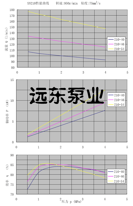 | SNH210R46E6.7W23三螺桿泵性能曲線圖 |